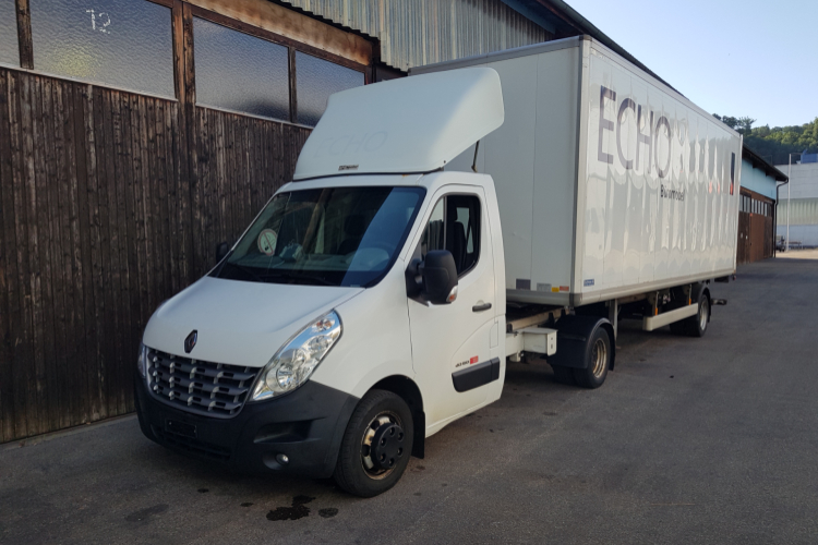 Wir verkaufen ab Platz ohne Garantie und Aufbereitung eine Renault Master Sattelzugmaschine inkl. Fankhauser Sattel-Sachentransportanhänger.