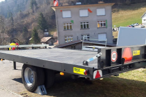 Der Hof Multi "dä gross" ist der ideale Transportanhänger / Tieflader für Maschinentransport , Ballentransport oder andere Materialien.