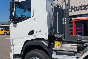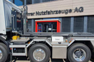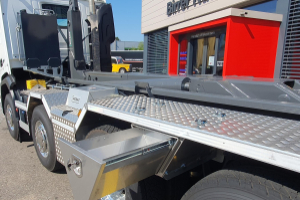 Mobas Hakengerät mit pneumatisch ausfahrbarem Unterfahrschutz